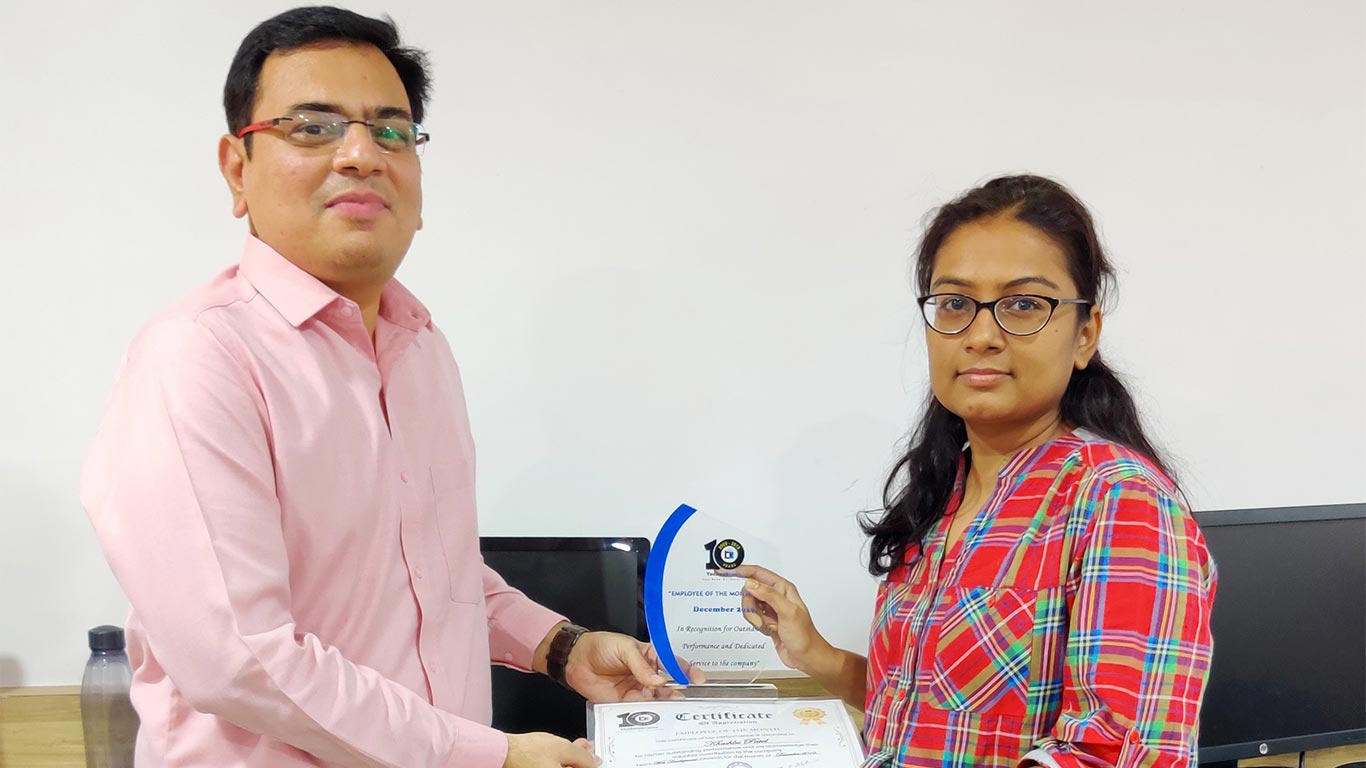 Employee recognition can build loyalty in the workplace and foster a sense of belonging. As a result of their participation and efforts, we reward our employees from time to time. We feel our job doesn’t get over by just hiring the best talent in the industry. In fact, our management feels that our work begins from there. So, we strive hard to offer recognition, appreciation and give plenty of opportunities to our employees to grow. We have awards in various categories that we give during our monthly get-together. Here, we acknowledge the best employee of the month, best debutant award (recognizes the new joiners), and many others.