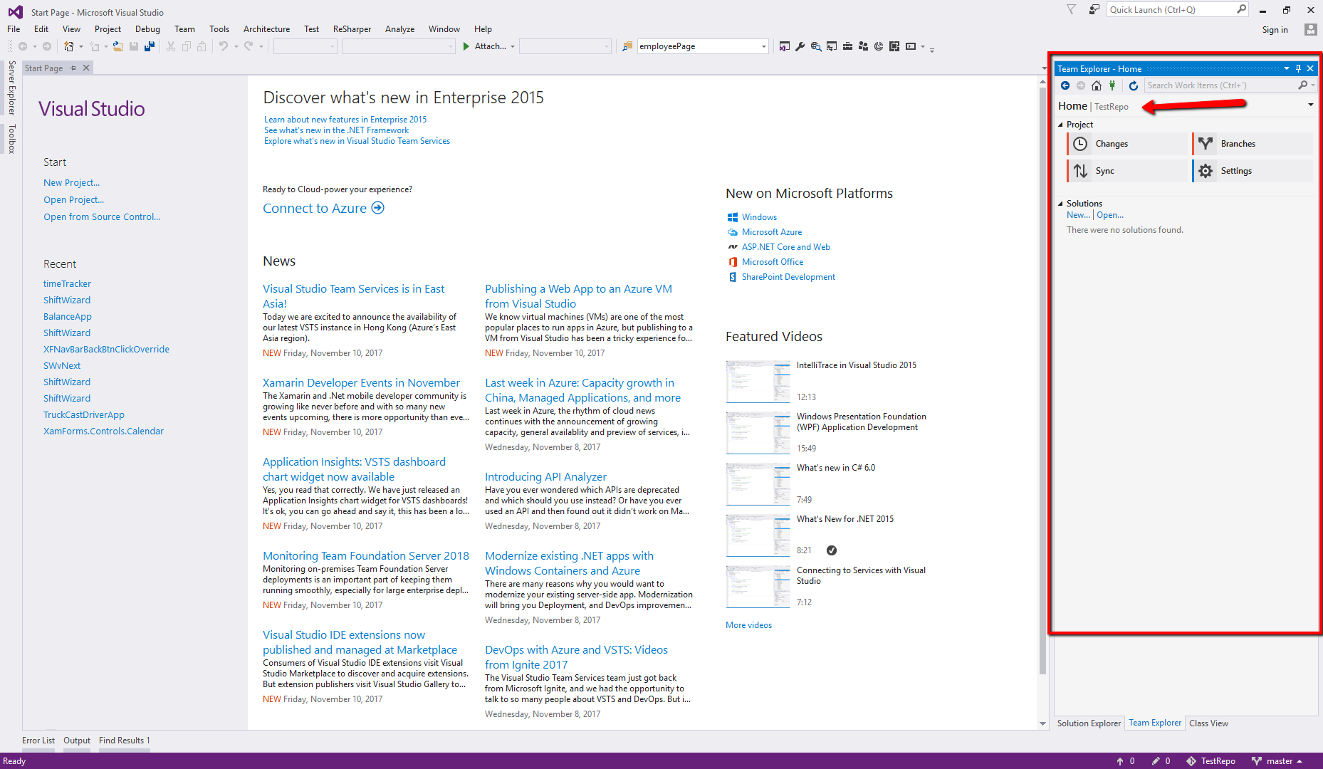 Then open team explorer. If you don’t find it then goto View > Team Explorer