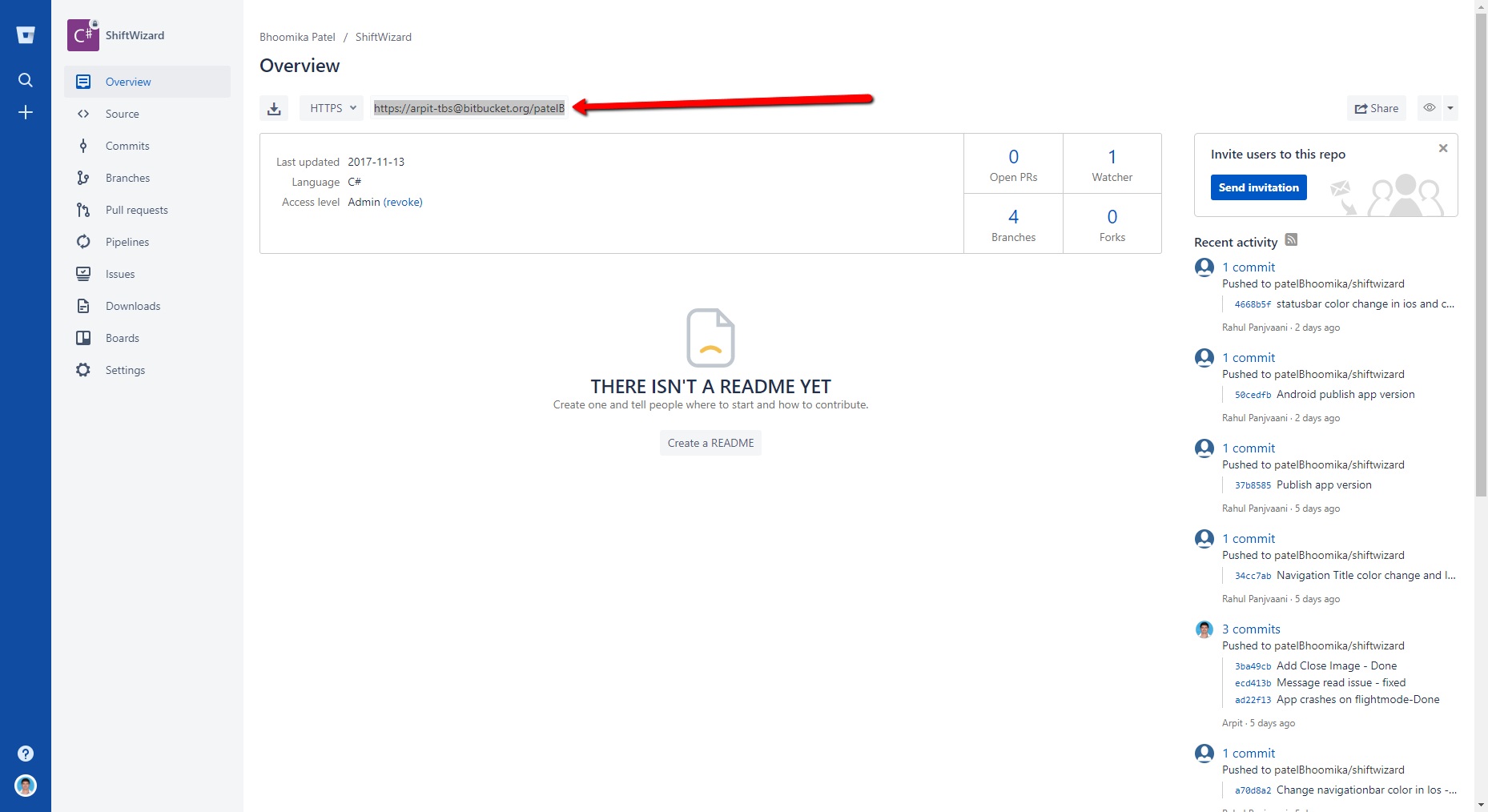 In my case url is http://[email protected]/git/TestRepo.git